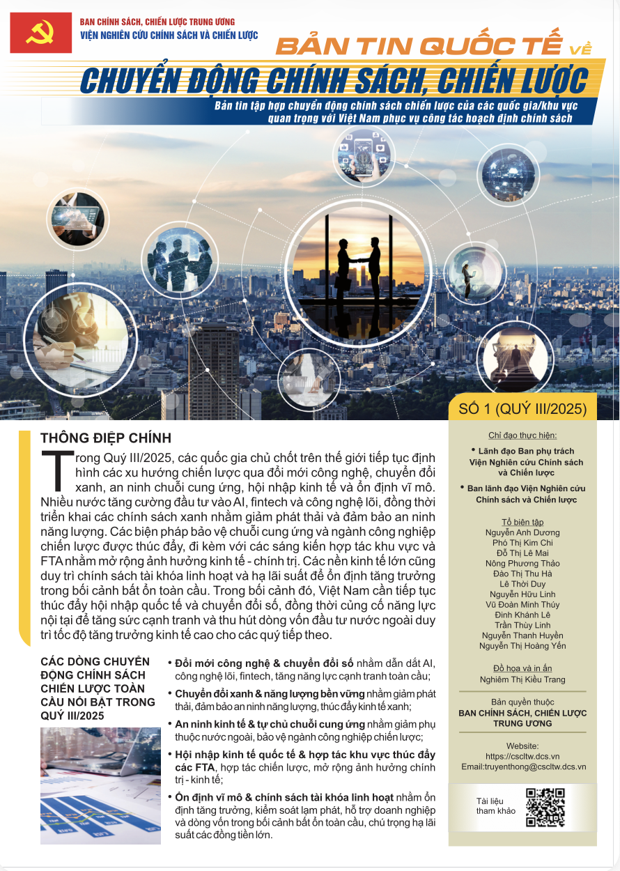 Ban Chính sách, chiến lược Trung ương trân trọng giới thiệu Bản tin quốc tế về chuyển động chính sách, chiến lược số 1 (Quý III/2025)
