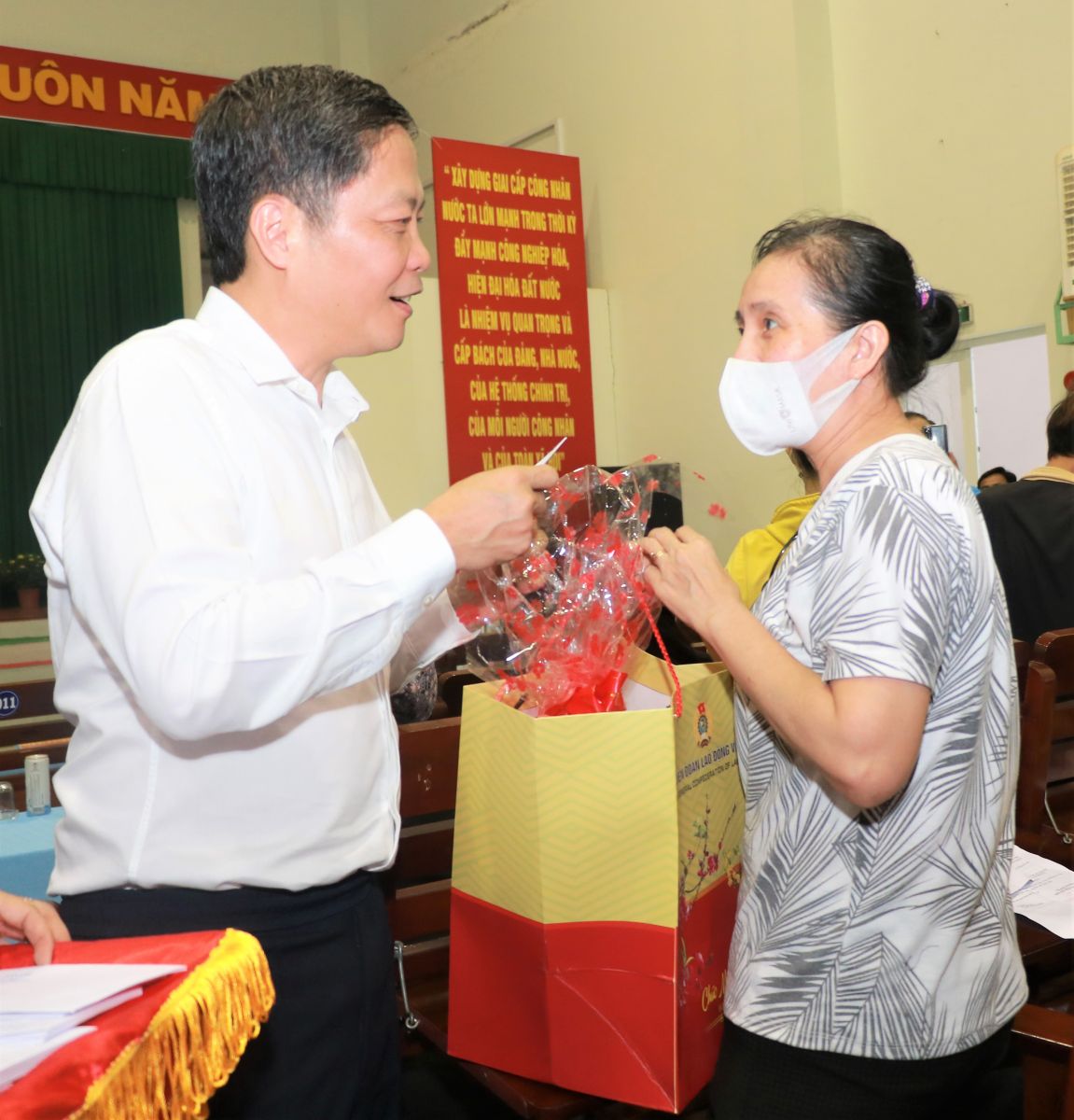 Đồng chí biểu dương những đóng góp của đội ngũ công nhân, người lao động cho sự phát triển của đất nước; chia sẻ về sự quan tâm, chăm lo cho các đối tượng chính sách, hộ nghèo, người lao động, nhất là người lao động có hoàn cảnh khó khăn trong dịp Tết là một hoạt động có ý nghĩa xã hội và nhân văn sâu sắc, được Đảng, Nhà nước quan tâm chỉ đạo thực hiện để sao cho mọi người, mọi nhà đều được vui Xuân, đón Tết, không để bất cứ người lao động nào bị bỏ lại phía sau.