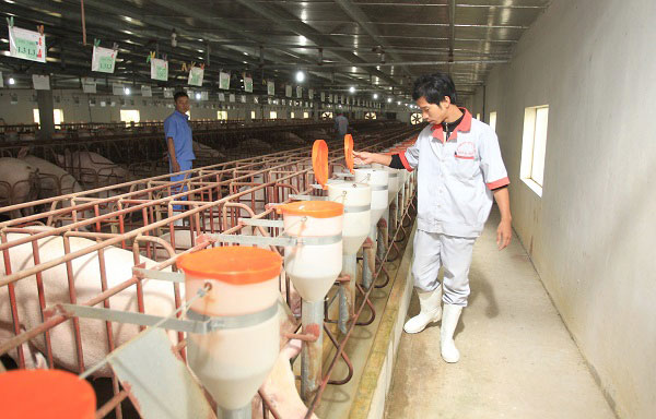 Kiểm tra chất lượng thức ăn cho lợn tại Hợp tác xã Chăn nuôi Hòa Mỹ (xã Vạn Thái, huyện Ứng Hòa