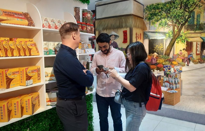 Các đại biểu tham quan các sản phẩm của doanh nghiệp Thành phố Hồ Chí Minh tại phòng trưng bày thuộc Trung tâm Xúc tiến Thương mại