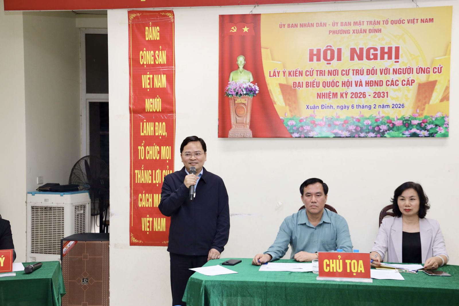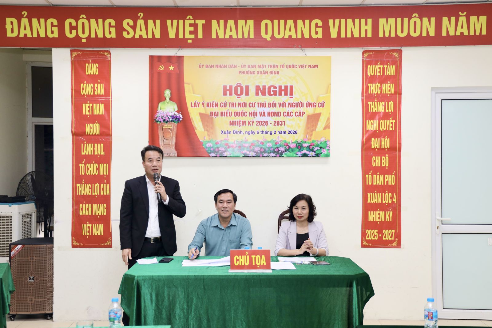 Thay mặt những người được giới thiệu ứng cử ĐBQH khóa XVI và Đại biểu HĐND các cấp, đồng chí Nguyễn Anh Tuấn cảm ơn sự tín nhiệm, tình cảm tốt đẹp, sự quan tâm, giúp đỡ mà chính quyền và cử tri tổ dân phố Xuân Lộc 4 phường Xuân Đỉnh dành cho người ứng cử. Các đồng chí ứng cử ĐBQH và HĐND xin hứa nếu tiếp tục được Đảng và nhân dân tín nhiệm và được trúng cử đại biểu Quốc hội khóa XVI và đại biểu HĐND, sẽ giữ vững lập trường chính trị, kiên định mục tiêu, lý tưởng của Đảng; luôn tu dưỡng, rèn luyện đạo đức, nêu cao tính gương mẫu, giữ gìn phẩm chất, uy tín của người cán bộ lãnh đạo, người đại biểu dân cử; xứng đáng với sự tin cậy của Đảng, Nhà nước và Nhân dân; tham gia có trách nhiệm vào các quyết sách quan trọng của Quốc hội và HĐND; phát huy kinh nghiệm trong các lĩnh vực công tác, tiếp thu tất cả ý kiến của cử tri, lắng nghe ý kiến, nguyện vọng của cử tri và nhân dân; bày tỏ mong muốn nhận được sự tin tưởng, đồng hành của cử tri và nhân dân.