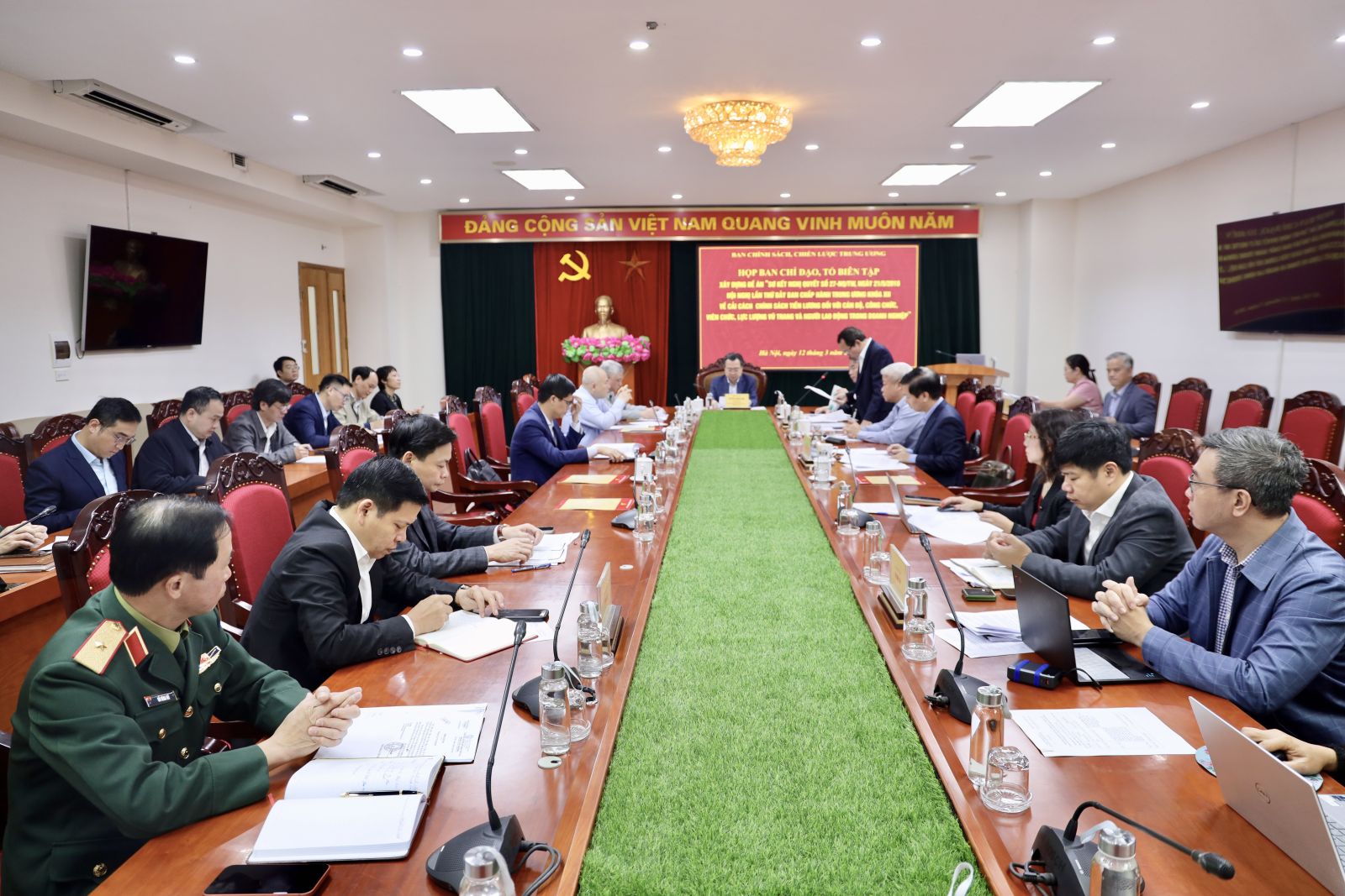 Đồng chí Nguyễn Thanh Nghị, Ủy viên Bộ Chính trị, Bí thư Trung ương Đảng, Trưởng Ban Chính sách, chiến lược Trung ương, Trưởng Ban Chỉ đạo chủ trì Hội nghị. Tham dự Hội nghị có đồng chí Nguyễn Thế Mạnh, Phó Trưởng Ban Chính sách, chiến lược Trung ương, Phó Trưởng Ban Thường trực Ban chỉ đạo, Tổ trưởng Tổ Biên tập; Thượng tướng Nguyễn Quang Ngọc, Ủy viên Trung ương Đảng, Thứ trưởng Bộ Quốc phòng. Dự họp có các đồng chí thành viên Ban chỉ đạo, Tổ Biên tập, đại diện các cơ quan liên quan và một số cán bộ của Ban.