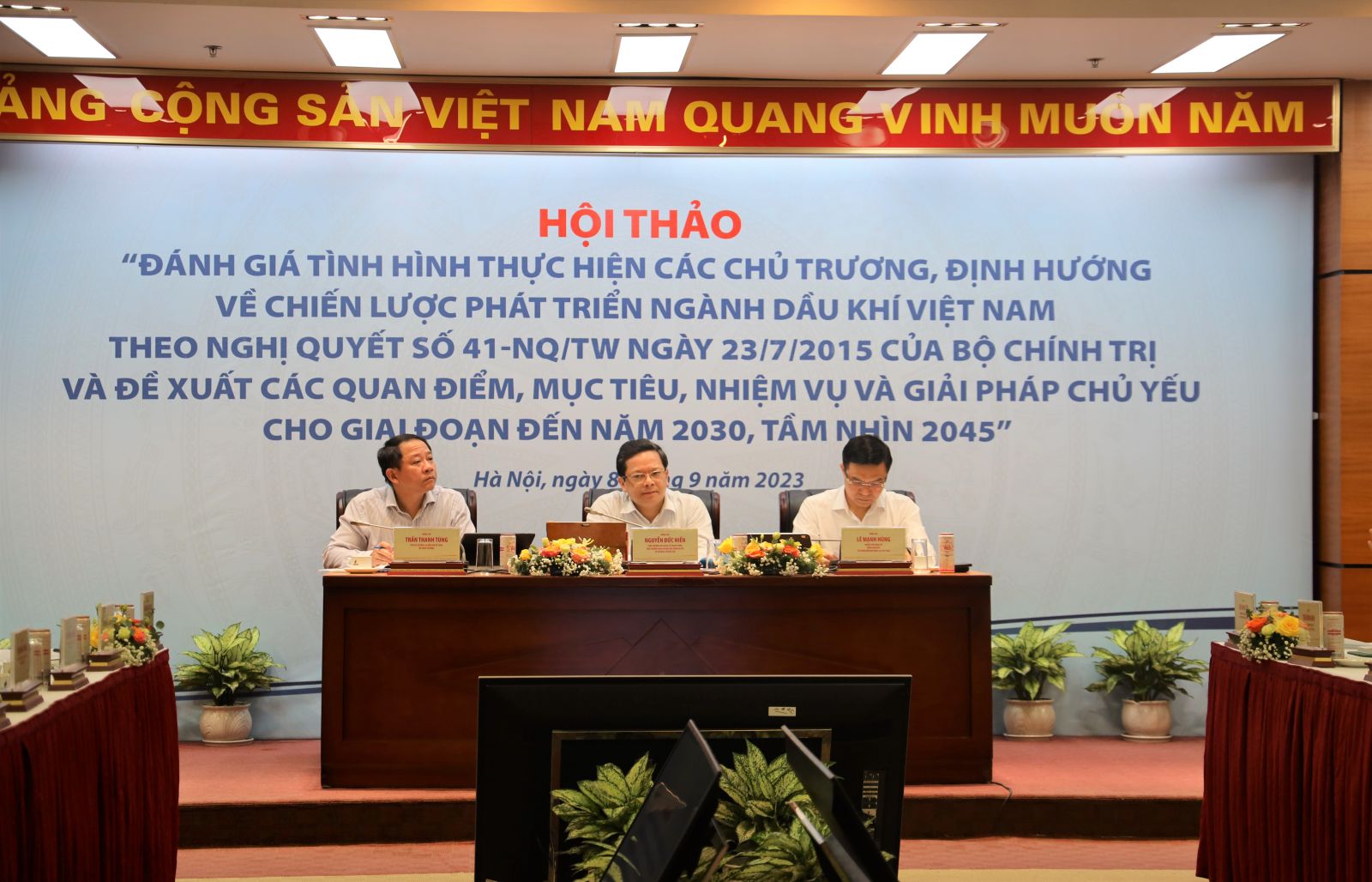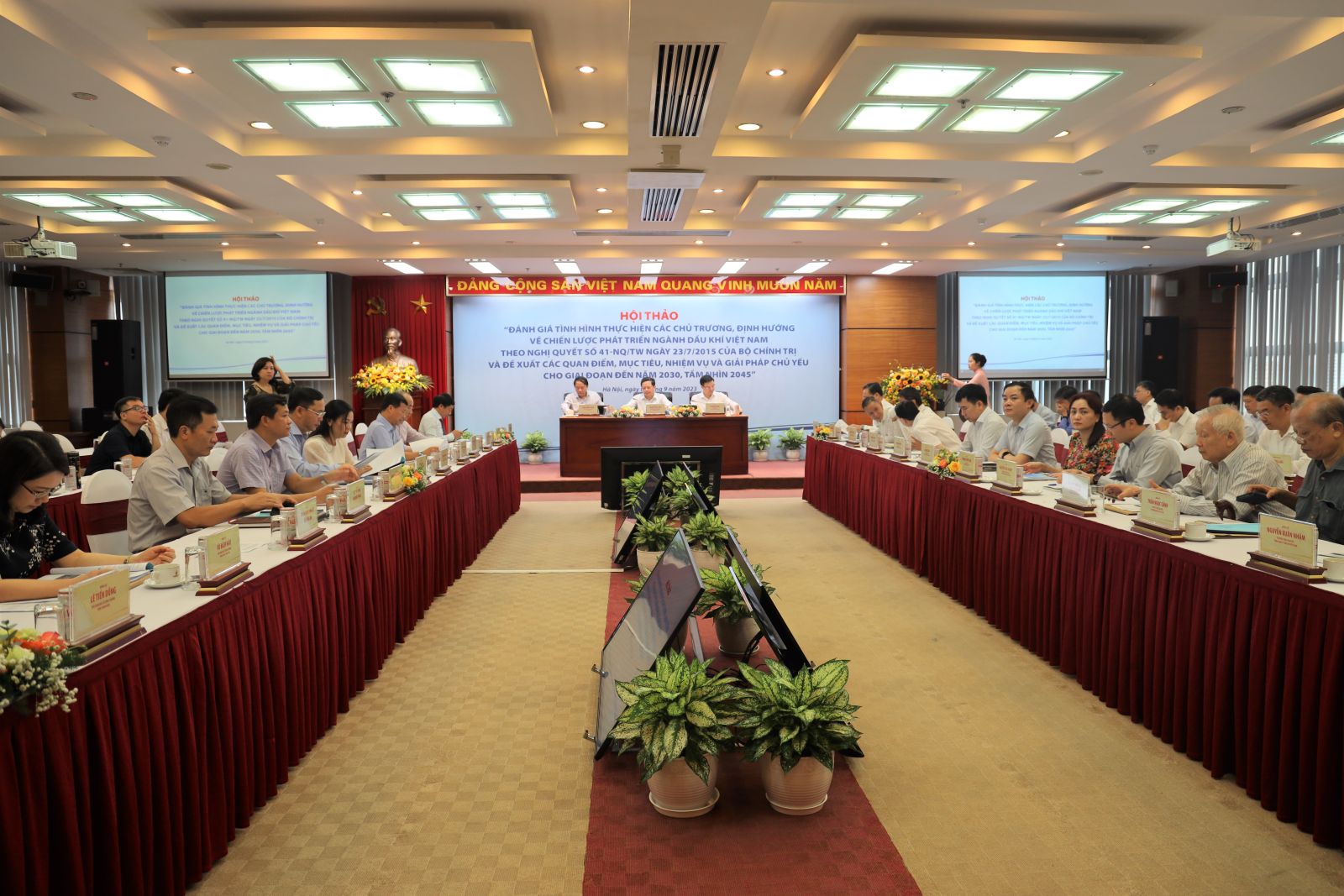 Hội thảo đã tập trung đánh giá tình hình triển khai thực hiện Nghị quyết số 41-NQ/TW, việc thực hiện các chỉ tiêu nhiệm vụ đề ra trong Nghị quyết. Các đại biểu đã tập trung thảo luận về một số vấn đề như: đánh giá tiềm năng dầu khí Việt Nam; Cách tiếp cận và tư duy mới về chiến lược phát triển ngành dầu khí Việt Nam trong tình hình mới; Hoàn thiện cơ chế, chính sách, pháp luật phát triển ngành dầu khi Việt Nam đến năm 2030, tầm nhìn đến 2045; Phát triển hạ tầng dự trữ và hoàn thiện cơ chế chính sách kinh doanh xăng dầu đáp ứng nhu cầu thị trường trong nước; Phát triển ngành dầu khí Việt Nam gắn liền với nhiệm vụ quốc phòng - an ninh - đối ngoại… Các đại biểu đã có các kiến nghị, đề xuất nhằm đảm bảo bắt kịp xu hướng thời đại, cũng như tháo gỡ những tồn tại, xây dựng các cơ chế, chính sách đặc thù riêng đảm bảo phát triển ngành Dầu khí nhanh, bền vững, cần sớm trình Bộ Chính trị xem xét ban hành nghị quyết mới về “Định hướng chiến lược phát triển ngành Dầu khí Việt Nam đến năm 2030, tầm nhìn đến năm 2045”.