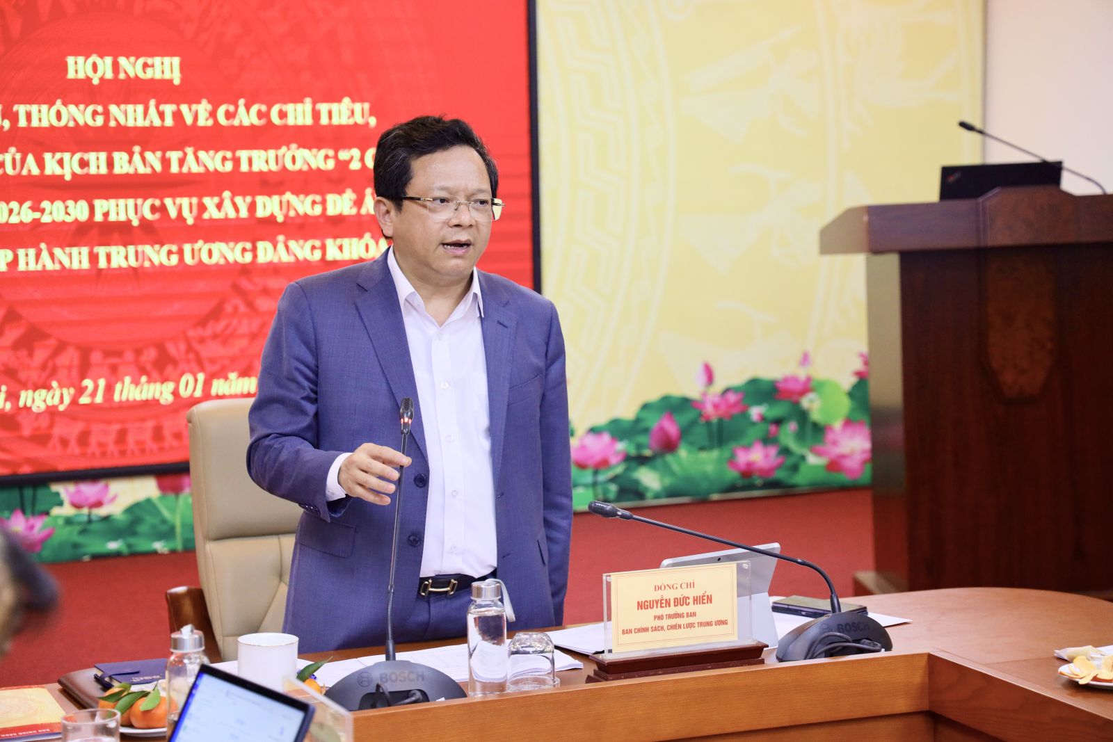 Phát biểu định hướng buổi làm việc, đồng chí Phó Trưởng Ban Nguyễn Đức Hiển yêu cầu các bộ, ngành, phát biểu luận giải về các chỉ tiêu của kịch bản tăng trưởng kinh tế “2 con số”; làm rõ tính hợp lý của các chỉ tiêu quan trọng thuộc lĩnh vực của các ngành kinh tế; các vấn đề khác, vấn đề mới cần quan tâm. Đồng chí nhấn mạnh về thời gian gấp rút của nhiệm vụ xây dựng Đề án và dự thảo Nghị quyết của Ban Chấp hành Trung ương Đảng khóa XIV, đề nghị Bộ Tài chính và các bộ chuyên ngành cho ý kiến trực diện vào các chỉ tiêu, sự cần thiết phải điều chỉnh tổng thể nếu có, gợi mở các giải pháp lớn vào dự thảo nghị quyết trình Trung ương trong thời gian sắp tới.