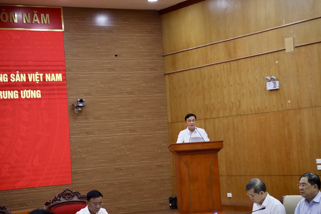 Đồng chí Nguyễn Đức Hiển, Phó Trưởng Ban Chính sách, chiến lược Trung ương trình bày báo cáo tóm tắt về tình hình triển khai và kết quả nghiên cứu chủ yếu của Đề án trình Ban Chấp hành Trung ương Đảng khóa XIV ban hành Nghị quyết về “Các giải pháp chiến lược thúc đẩy tăng trưởng kinh tế “2 con số” gắn với xác lập mô hình tẳng trưởng mới.