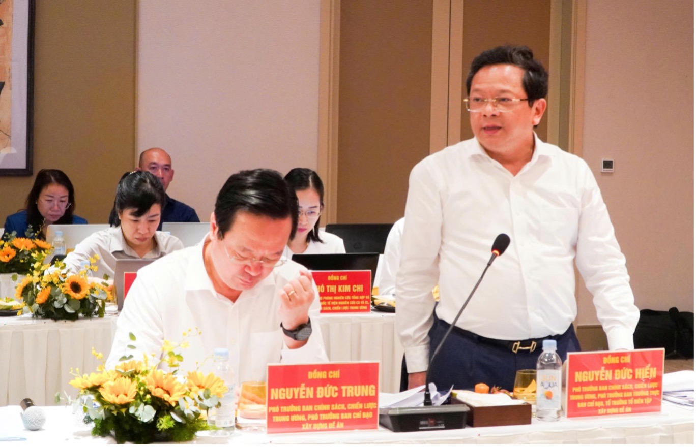 Đồng chí Phó Trưởng Ban Nguyễn Đức Hiển đánh giá cao các báo cáo đã được chuẩn bị đầy đủ, công phu, nghiêm túc. Đồng thời, đồng chí Phó Trưởng Ban Nguyễn Đức Hiển có một số gợi mở một số cơ chế, chính sách phát triển An Giang trong giai đoạn tới như: hoàn thiện và phát triển hạ tầng năng lượng, khuyến khích phát triển năng lượng tái tạo; có cơ chế thực sự cạnh tranh, vượt trội trong khu vực Châu Á đối với đặc khu Phú Quốc để phát triển Phú Quốc thành đặc khu thế hệ mới (tiên phong về chuyển đổi số, cơ chế thử nghiệm có kiểm soát về các lĩnh vực mới...), hướng tới nền kinh tế dựa trên 4 trụ cột là ”kinh tế đại dương, khu đô thị sân bay, đặc khu số, thương mại tự do”; nghiên cứu thành lập công ty đầu tư tài chính của đặc khu, hình thành quỹ dự phòng rủi ro...