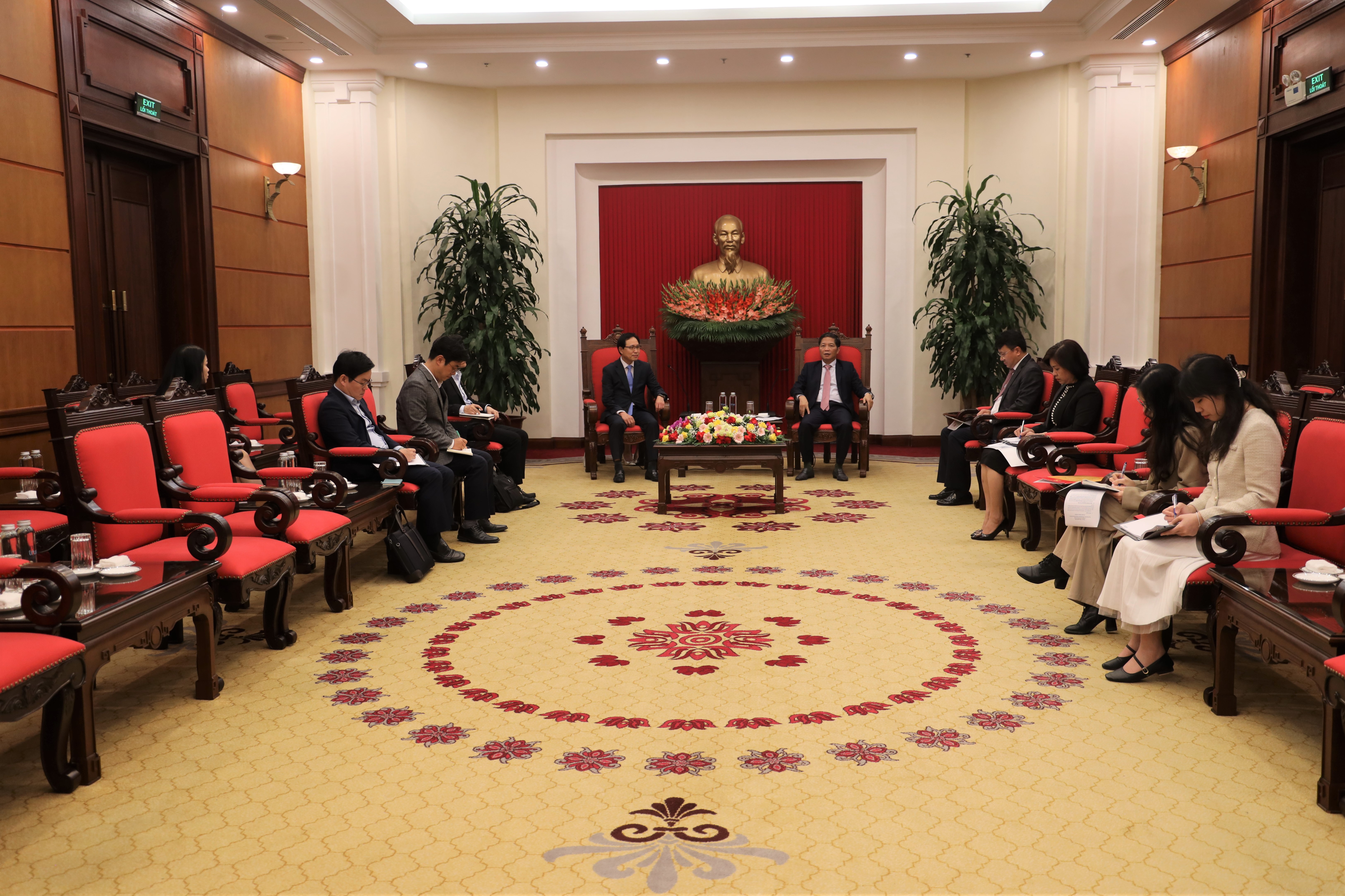 Đồng chí Trần Tuấn Anh chào mừng Đoàn công tác của Tập đoàn Samsung