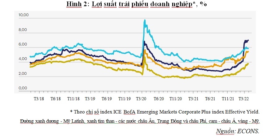 Cả những yếu tố khác cũng tác động đến lợi suất ở các nước đang phát triển: Lạm phát tăng trên quy mô toàn cầu và các nước phát triển áp dụng những biện pháp thắt chặt chính sách tiền tệ.
